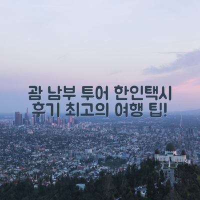 여러분, 괌의 멋진 풍경을 즐기고 싶다면 한인택시를 통해 편안하게 이동해보세요. 괌 여행 가이드: 남부투어와 한인택시 이용 후기처럼, 여러분의 여행을 더욱 특별하게 만들어줄 거예요!