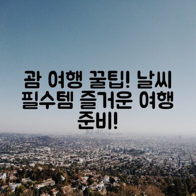 이처럼 간단한 아이템으로도 괌 여행이 더 즐거워질 수 있습니다. 날씨를 미리 체크하고 필요한 아이템을 준비하여 편안한 여행을 만들어 보세요.