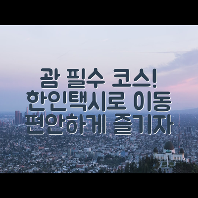 괌 여행 필수 코스에서 한인택시는 특히 편리한 이동 수단으로 주목받고 있습니다. 하지만 가격과 서비스의 균형을 잘 따져보는 것이 중요합니다.