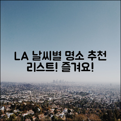 로스앤젤레스에서 즐기는 날씨별 명소 추천을 통해 다양한 기후에 맞는 액티비티를 제안합니다. 날씨에 따라 어떤 장소와 활동이 적합할지 비교해보세요.