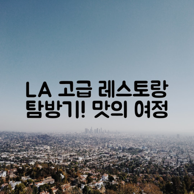 로스앤젤레스의 고급 레스토랑 탐방기를 통해 고급 요리와 저가형 레스토랑의 차이를 알아보겠습니다. 품질, 분위기, 가격을 비교하여 어떤 경험이 더 가치 있는지 판단해 보세요.