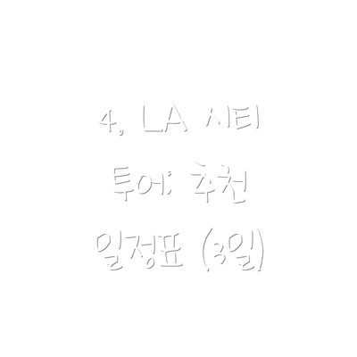 아래 표는 3일간의 LA 시티 투어 일정표 예시입니다. 여러분의 취향에 맞게 수정하여 사용하세요.