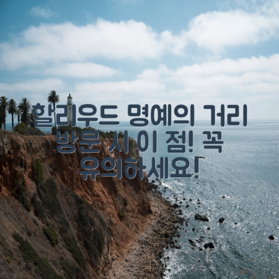 방문 시 주의할 점은 많은 관광객이 모이는 장소인 만큼 주의 깊게 주변을 살펴보는 것입니다. 스타의 별을 찾는 것도 중요하지만, 주변에서 안전하게 움직이는 것을 잊지 마세요. 또한, 다른 관광객을 배려하며 사진을 찍는 것이 좋습니다.