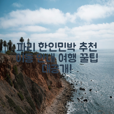 위의 정보는 파리 여행을 계획하는 데 있어 큰 도움이 될 것입니다. 가장 적합한 한인민박을 선택하여 편안한 여행을 즐기세요!