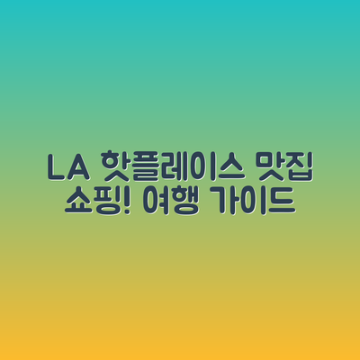 LA의 핫플레이스와 맛집을 탐방하며, 쇼핑도 즐길 수 있는 다양한 정보가 준비되어 있습니다. 더불어 여행 계획을 완벽하게 만드는 데 도움이 될 것입니다.
