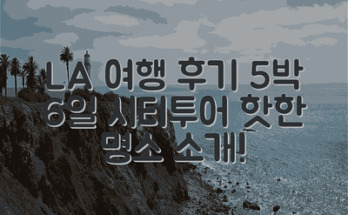 5일 동안 꼭 가봐야 할 명소 로스앤젤레스는 매력적인 도시로, 다양한 관광 명소가 여럿 있습니다. 로스앤젤레스 여행 5박 6일 후기: 시티투어를 중심으로 다양한 명소를 소개합니다. 로스앤젤레스의 명소는 문화, 자연, 엔터테인먼트가 조화를 …