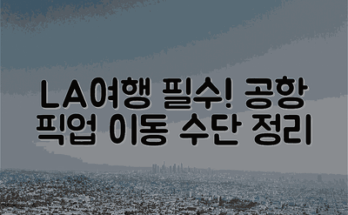 LA 공항 픽업 옵션 비교 LA여행 계획하기에서 공항 픽업 옵션은 여행의 시작을 편리하게 만들어 줍니다. 다양한 이동 수단을 비교하여 상황에 맞는 최선의 선택을 할 수 있습니다. LA 국제공항(LAX)에는 여러 가지 …