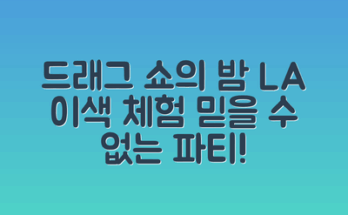 드래그 쇼의 매력은? 로스앤젤레스의 밤문화에서 드래그 쇼는 단순한 공연이 아니라, 자신을 표현하고 다양성을 축하하는 플랫폼입니다. 이러한 쇼는 관객에게 독창적이고 화려한 비주얼을 제공하며, 뛰어난 재능의 드래그 아티스트들이 선보이는 무대는 매력적입니다. 드래그 …