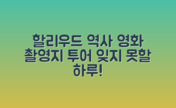 역사적인 장소를 방문하세요 할리우드의 역사적인 영화 촬영지를 돌아보는 하루 동안, 영화의 탄생과 발전을 함께 느낄 수 있는 장소들을 탐방할 수 있습니다. 다양한 시대의 영화가 제작된 장소들은 각각의 매력과 이야기를 지니고 …