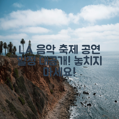 LA에서 열리는 음악 축제와 공연 일정에서 10대 인기 음악 축제를 알아보세요. 다양한 장르와 아티스트들이 모이는 이 축제들은 음악 팬들에게 잊지 못할 경험을 제공합니다.