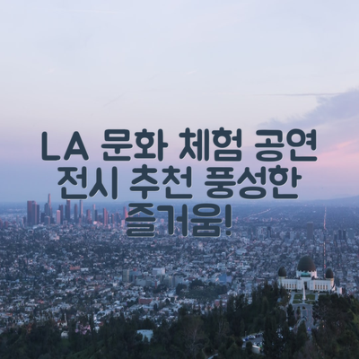 LA와 함께하는 풍성한 문화 체험을 준비할 수 있는 방법을 알아봅시다. 이 가이드는 체계적으로 공연과 전시회를 계획하는 데 도움이 될 것입니다.