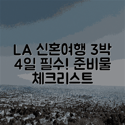 LA 신혼여행을 계획하고 계신가요? 이 특별한 시간을 제대로 즐기기 위해서는 몇 가지 필수 준비물이 있다는 사실, 알고 계신가요? 신혼여행이란 새로운 시작을 알리는 성대한 축제와 같으니, 완벽한 준비로 행복한 순간을 만끽해보세요!