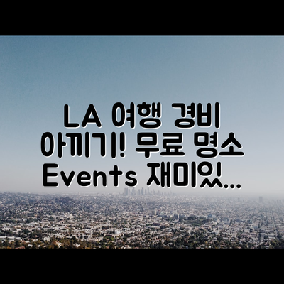 LA 여행 경비를 아끼는 법은 여행의 질을 높이는 동시에 예산을 절감할 수 있는 효과적인 전략입니다. 여행 중 무료 명소와 행사를 이용하면 경제적인 부담을 덜 수 있습니다.