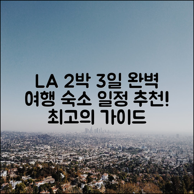 LA 여행 일정과 숙소 추천: 2박 3일 완벽 가이드에서 놓칠 수 없는 필수 명소를 소개합니다. 이 일정은 로스앤젤레스의 상징적인 장소와 다양한 문화 체험을 포함하여 여행의 깊이를 더해줄 것입니다.