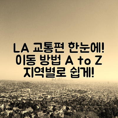LA 지역별 교통편 안내: 한눈에 보는 이동 방법을 통해 다양한 교통수단을 비교하고 자신의 이동 방식을 선택하는 데 도움을 드립니다. 아래의 정보를 참고하여 가장 효율적인 방법을 찾아보세요.