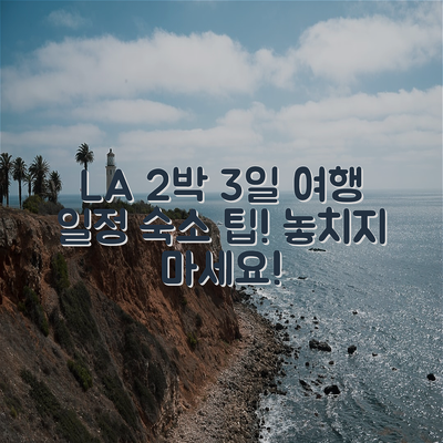 LA 2박 3일 여행 일정은 다양한 경험을 할 수 있는 기회를 제공합니다. 각 코스는 특징적이고 즐길 거리로 가득합니다.