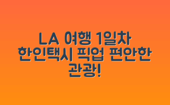 한인택시의 장점은? 한인택시는 LA 여행 1일차에 공항 픽업과 관광을 편안하게 즐길 수 있는 훌륭한 선택입니다. 특히, 현지 언어에 대한 불안감 없이 소통할 수 있어 더욱 안심할 수 있습니다. 또한, 한인택시는 …